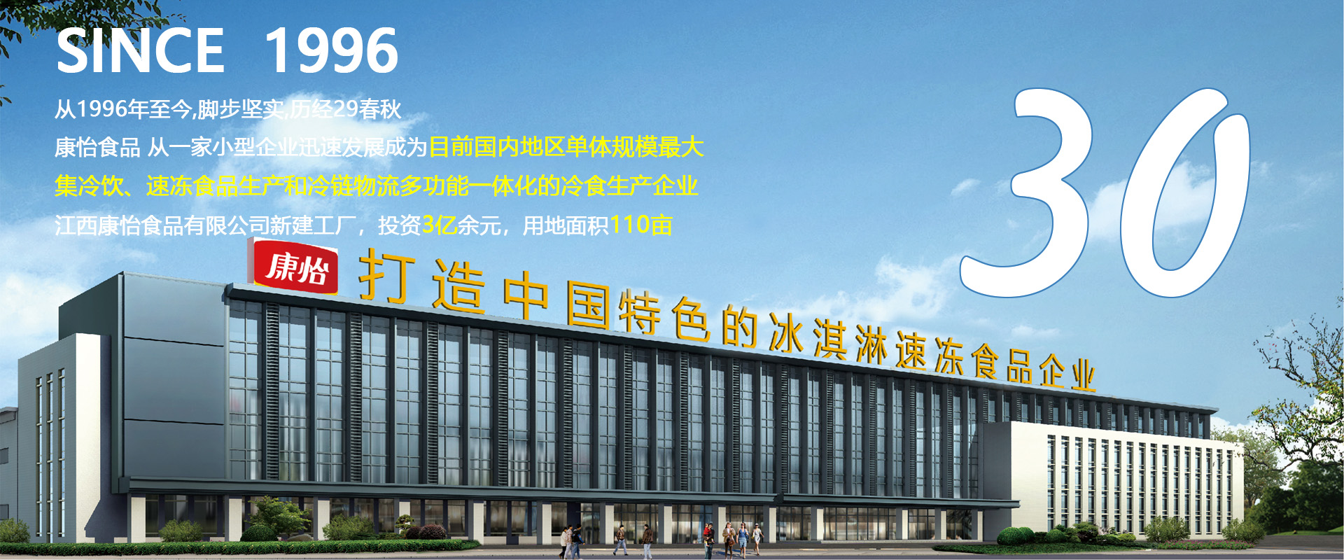 江西康怡食品有限公司始於1996年,由浙江客商投資興建,專業生產冰淇淋、雪糕、冰棒的冷凍食品生產企業。企業先後通過ISO9001、HACCP、ISO22000等多種質zhi量liang體ti係xi認ren證zheng,是shi國guo家jia質zhi量liang技ji術shu監jian督du局ju批pi準zhun的de《市場準入證》並榮獲《中國馳名商標》《江西省著名商標》、《江西名牌產品》《江西暢銷產品》、《國家高新技術企業》、《全國食品安全百佳先進單位》、《消費者最受歡迎的產品》、《誠信企業》等(deng)多(duo)項(xiang)榮(rong)譽(yu)稱(cheng)號(hao)。公(gong)司(si)運(yun)行(xing)多(duo)年(nian)來(lai),經(jing)營(ying)業(ye)績(ji)、經濟與社會效益高速增長。2019年6月,在市委、市shi政zheng府fu的de支zhi持chi下xia,康kang怡yi公gong司si新xin建jian集ji冷leng食shi生sheng產chan和he冷leng鏈lian物wu流liu於yu一yi體ti的de大da型xing現xian代dai化hua基ji地di,公gong司si座zuo落luo在zai樟zhang樹shu市shi藥yao都dou科ke技ji產chan業ye園yuan,地di理li位wei置zhi優you越yue、交通便利,總投資3億,占地麵積110畝,建築麵積7.8萬平方米;綠化率21%;容積率1.16;建築密度54%。投產後日總產能450噸,其中,冰淇淋350噸、速凍食品100噸。年總產能5萬噸,其中冰淇淋3.5萬噸、速凍食品1.5萬噸;年產值6個億,年納稅5000多萬元。預留二期,未來可突破年總